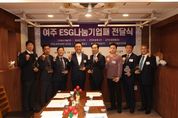 [경기탑뉴스=한진선 기자] 지난 11월 24일 여주시는 경기 사회복지공동모금회 주최로 관내 ESG나눔기업패 전달식을 개최했다. 금번 ESG나눔기업패는 ESG나눔경영을 실천하며 2024년 한 해 동안 경기 사랑의열매를 통해 여주시에 1,000만원 이상 기탁한 기업 및 단체 등에게 전달하는 것으로, 그린피아기술(주), 동보전기(주), 대순진리회 수색방면, 삼덕산업개발(주), ㈜부광에너지, ㈜신세계사이먼 여주점, 여주새마을금고, 에스아이건설(주), 엔지니어링공제조합 등 9개소가 대상이었다. 이충우 여주시장은 “이 자리는 ESG나눔경영을 실천한 기업에 대한 감사와 격려의 자리로, 기업과 지역사회가 함께 성장하는 협력 모델을 제시하고 지속 가능한 발전을 위한 새로운 가능성을 보여준 기업들에게 감사드린다”라고 전했다. 또한, 여주시에서는 연말연시 기부 문화 활성화를 위해 2025. 12. 1. ~ 2026. 1. 31. 기간 동안 '여주시 희망2026나눔캠페인'을 추진할 예정인 바, 많은 관심과 참여를 당부했다.