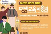 [경기탑뉴스=박봉석 기자] 경기도와 경기도평생교육진흥원이 8일부터 19일까지 ‘2025년 장애인 평생교육이용권’ 신청자를 추가 모집한다. ‘장애인 평생교육이용권’은 등록장애인의 교육 기회를 넓히기 위해 1인당 최대 35만 원의 평생교육 강좌 수강료와 교재비를 지원하는 사업이다. 추가 모집은 이미 모집이 완료된 지역을 제외한 8개 시군을 대상으로 진행된다. 시군별 모집 인원은 ▲수원 29명 ▲화성 16명 ▲안산 15명 ▲김포 14명 ▲의정부 10명 ▲양주 16명 ▲양평 9명 ▲연천 8명 등 총 117명이다. 신청 대상은 신청일 기준 도내에 주민등록이 된 만 19세 이상 등록장애인이다. 단, 2025년 국가장학금 수혜자, 기존 경기도 평생교육이용권 선정자, 시군 자체 이용권 수혜자는 제외된다. 접수 기간은 9월 8일 오전 10시부터 19일 오후 6시까지며, 보조금24 누리집(gov.kr) 또는 시군 방문을 통해 신청할 수 있다. 도는 9월 말 ‘경기도 평생교육이용권’ 누리집 공지와 개별 문자 선정 결과를 안내할 계획이다. 지급된 이용권은 경기도 평생교육이용권 누리집에 등록된 평생교육시설·평