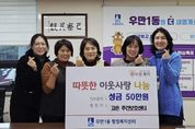 [경기탑뉴스=박봉석 기자] 수원 고은 주간보호센터는 지난 12월 9일, 관내 어려운 이웃을 돕기 위해 수원시 팔달구 우만1동에 성금 50만 원을 기부하며 따뜻한 마음을 전했다. 권은주 고은 주간보호센터장은 “연말연시 어려움을 겪는 이웃들에게 작은 힘이 되길 바라는 마음으로 준비했다”며 “모두가 건강하고 따뜻한 연말을 보내시길 바란다”고 전했다. 또한 “앞으로도 지역사회를 위한 사회공헌 활동을 꾸준히 이어가겠다”며 지속적인 나눔 의지를 밝혔다. 이에 김미라 우만1동장은 “늘 지역을 위한 사랑을 실천해 주시는 고은 주간보호센터에 깊이 감사드린다”며 “전달해 주신 소중한 성금이 꼭 필요한 이웃들에게 따뜻하게 전달되도록 하겠다”고 감사의 뜻을 전했다. 우만1동 행정복지센터는 연말을 맞아 다양한 이웃돕기 활동을 통해 지역 내 취약계층 지원에 더욱 힘쓸 계획이다.