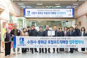 [경기탑뉴스=박봉석 기자] 수원특례시와 봉화군농어업회의소는 19일 수원시청에서 로컬푸드 입점 협약을 체결했다. 협약식은 이날 시청 별관 앞에서 열린 ‘봉화 수원 캠핑장 개장 기념 농산물 직거래장터’에서 진행됐다. 수원시는 인구소멸 위기 지역 농가의 안정적 판로 확보를 지원하고, 시민에게 신선한 지역 농산물을 제공할 예정이다. 협약식에는 남상은 수원시 농업기술센터 소장, 김주익 봉화군농어업회의소 회장, 신종길 봉화군 농업기술센터 소장 등이 참석했다. 봉화 수원 캠핑장 개장 기념 농산물 직거래장터에는 수원시·봉화군·수원농협·하나로마트 수원점이 참여했다. 수원로컬푸드직매장은 상추·배추·표고버섯 등 농산물을, 봉화군은 사과·생강·고구마·마 등 주요 특산물을 판매했다. 하나로마트 수원점은 감, 인삼, 대추, 새우젓, 멸치 등 통영·사천·김천 등의 농산물을 판매했다. 방문객에게 정다미 500g 200개와 장바구니 200개를 제공하는 행사도 진행했다. 수원시 관계자는 “수원시민에게 신선한 로컬푸드를 제공하고, 인구소멸 위기 지역 농가와 상생 협력할 수 있는 기반을 마련했다”며 “지역 농가와 시민 모