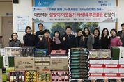 [경기탑뉴스=박봉석 기자] 영통구 매탄4동 행정복지센터는 지난 10일, 설 명절을 앞두고 지역 내 어려운 이웃들을 위한 ‘설맞이 사랑의 후원물품 전달식’을 개최하며 지역사회에 따뜻한 정을 나눴다. 이번 전달식은 매탄4동 주민자치회를 비롯한 9개 단체와 △삼성전기 △매탄농협 △오성환경 △㈜나누리 △관내 주민 등 많은 이웃들의 자발적인 참여로 마련됐다. 이날 후원받은 물품은 백미 46포, 선물세트 97세트, 김 330박스, 부식세트 39박스, 라면 15박스 등 설을 앞둔 취약가구에 실질적인 도움이 되도록 준비됐다. 특히 명절을 맞아 이웃을 먼저 떠올린 주민과 단체들의 따뜻한 마음이 이어지며, 단순히 물건을 나누는 자리를 넘어 소외된 이웃 없이 모두가 행복한 명절을 기원하는 매탄4동 공동체의 마음이 모인 자리였다. 후원물품은 관내 저소득층 480여 가구와 사회복지시설 3개소에 전달될 예정으로, 이웃들의 정성이 더해져 어느 때보다 훈훈한 설 명절이 될 것으로 기대된다. 장대현 주민자치회장은 “어려운 이웃을 위해 기부에 동참해 주신 모든 분들께 진심으로 감사드린다”며 “이웃의 마음이 전해지는 따뜻하고 온정