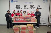 [경기탑뉴스=박봉석 기자] 수원 어울림헤라봉사회는 지난 6일 연말을 맞아 수원시 장안구 정자3동에 선물 15박스를 후원했다. 이번 후원물품은 연말을 앞두고 도움이 필요한 이웃들에게 소중히 전달될 예정이다. 어울림헤라봉사회는 강남여성병원에서 운영하는 헤라건강학교 졸업생들이 모여 결성한 단체로, 2020년 창단 이후 꾸준한 봉사를 이어가고 있다. 장지원 회장은 “연말을 맞아 어려운 이웃에게 조금이라도 도움이 되고자 후원을 결정했다”며 “이번 나눔이 따뜻한 위로가 되길 바란다”고 말했다. 송근숙 정자3동장은 “기부 물품은 도움이 필요한 가정에 잘 전달하겠다”며 “추운 날씨에 우리 이웃들이 따뜻한 겨울을 보낼 수 있도록 최선을 다하겠다”고 전했다.
