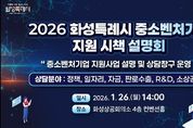 [경기탑뉴스=박봉석 기자] 화성특례시가 관내 중소기업과 소상공인의 경영 애로 해소와 지원사업 활용도를 높이기 위해 오는 26일 화성상공회의소 컨벤션홀에서 ‘2026년 화성특례시 중소벤처기업 지원 시책 설명회’를 개최한다. 이번 설명회는 화성특례시를 비롯해 경기지방중소벤처기업청, 중소벤처기업진흥공단 등 13개 유관기관이 추진하는 ‘2026년 기업지원 사업’에 대한 종합적인 정보를 제공하기 위해 마련됐다. 설명회는 오후 2시부터 4시 30분까지 진행된다. 사전 신청도 가능하며, 별도 사전 신청 없이 기업인 및 소상공인 누구나 당일 현장 방문으로도 참여할 수 있다. 지원사업 발표는 ▲정책 분야(화성시, 화성산업진흥원) ▲일자리 분야(경기도일자리재단) ▲자금 분야(중소벤처기업진흥공단, 기술보증기금, 신용보증기금, 경기신용보증재단) ▲판로·수출분야(경기지방중소벤처기업청, 경기도경제과학진흥원, 경기지역FTA통상진흥센터) ▲R&D 분야(경기지방중소벤처기업청, 경기테크노파크) ▲소상공인 분야(소상공인시장진흥공단) 순으로 진행된다. 또한, 전 참여기관이 설명회장 외부에 별도로 마련된 상담창구에서 1:1 상담을 진행
