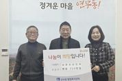 [경기탑뉴스=박봉석 기자] 수원시 장안구 연무동은 지난 19일, 상광교상인회 소속인 광교헌농원, 백운주말농장, 폭포농원, 형제농원, 자선농원 5개소가 행정복지센터를 방문해 어려운 이웃을 위한 성금 150만원을 기탁했다고 밝혔다. 광교헌농원, 백운주말농장, 폭포농원, 형제농원, 자선농원은 평소에도 광교산을 찾는 등산객과 주민들에게 건강한 먹거리를 제공하며 지역 경제 활성화에 기여해 왔으며, 이번 성금 기탁을 통해 지역 사회의 든든한 후원자로서의 면모를 보여주었다. 기탁식에 참석한 상인회 관계자는 “작은 정성이지만 우리 주변의 어려운 이웃들이 희망을 잃지 않고 살아가는 데 조금이나마 도움이 되길 바란다”며, “앞으로도 지역 사회를 위한 나눔 활동에 지속적으로 관심을 갖겠다”고 소감을 전했다. 공순정 연무동장은 “모두가 힘든 시기임에도 선뜻 큰돈을 기부해 주신 광교산 상인회분들께 깊이 감사드린다”며 “기탁해 주신 소중한 성금은 관내 복지 사각지대에 놓인 취약계층을 위해 투명하고 뜻깊게 사용하겠다”고 말했다.
