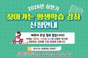 [경기탑뉴스=박봉석 기자] 안성시는 시민이 원하는 시간과 장소에서 희망하는 강좌를 수강할 수 있는 '2026년 상반기 찾아가는 평생학습 강좌'를 운영한다고 밝혔다. ‘찾아가는 평생학습 강좌’는 10명 이상의 시민이 학습동아리를 만들어 강좌를 신청하면, 강사가 직접 현장을 방문하여 교육을 진행하는 수요자 중심의 평생학습 프로그램이다. 신청 가능한 강좌 분야는 인문교양, 문화예술, 직업능력 등 다양하며, 다만 평생학습장터, 주민자치센터, 보건소, 경로당, 농업기술센터 등 타 부서에서 지원받는 동일·유사 프로그램은 중복 신청할 수 없다. 학습동아리는 강좌당 최대 24시간 범위 내에서 운영할 수 있으며, 강사비는 안성시에서 지원하고 재료비 등은 학습자가 부담한다. 신청기간은 4월 2일부터 4월 9일까지이며, 총 15개 강좌를 선착순으로 접수한다. 신청 대상은 안성시에 주소를 둔 10명 이상의 학습동아리이다. 신청은 안성배움e 홈페이지를 통해 온라인으로 가능하며, 안성배움e 홈페이지 → 평생교육사업 → 찾아가는 평생학습 강좌 → 평생학습 강좌 운영방법 → 신청서 다운로드 및 작성 → 신청서 업