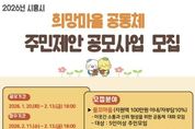 [경기탑뉴스=박봉석 기자] 시흥시는 주민이 주도하는 마을공동체 활성화를 위해 ‘2026년 시흥시 희망마을공동체 주민제안 공모사업’을 추진하고, 시민들의 이해를 돕기 위한 권역별 사전설명회를 다음 달 남부권과 중ㆍ북부권으로 나눠서 개최한다. 관련 사업은 이웃 간 소통과 협력을 바탕으로 주민 스스로 지역문제를 해결하고, 지속 가능한 마을공동체를 형성할 수 있도록 지원하는 사업이다. 시는 주민들의 자발적인 참여와 창의적인 아이디어를 통해 다양한 마을공동체 활동이 발굴될 것으로 기대하고 있다. 공모 신청 기간은 2월 11일부터 13일까지이며, 공모사업에 대한 이해를 높이기 위해 마련된 권역별 사전설명회는 남부권과 중부·북부권으로 나눠 진행된다. 남부권 설명회는 2월 3일 오후 3시 정왕동평생학습관 303호에서 열리며, 중부ㆍ북부권 설명회는 2월 6일 오전 10시 30분 시청 별관 4층 글로벌3에서 개최된다. 사전설명회에서는 공모사업의 추진 방향과 지원 내용, 신청 자격, 사업계획서 작성 방법 등을 안내하고, 질의응답을 통해 참여자들의 궁금증을 해소할 예정이다. 마을공동체 활동에 관심 있는 시민이라면 누구나 별도 신청