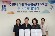 [경기탑뉴스=박봉석 기자] 수원특례시는 26일 시청 아동돌봄과 회의실에서 비영리민간단체 ‘꿈자람꿈드리’와 다함께돌봄센터 5호점 위·수탁 계약을 체결했다. 위탁 기간은 2025년 10월 1일부터 2030년 9월 30일까지 5년이다. 수원시 다함께돌봄센터 5호점은 영통구 중부대로448번길 28(원천레이크파크) 내 100㎡ 규모 시설로, 센터장 1명, 돌봄교사 1명, 시간제 돌봄교사 1명이 근무하며 아동들을 돌보고 있다. 수원시는 수탁자 선정 심의위원회를 열어 응모 기관의 운영 능력을 검토했고, 기존 운영법인인 꿈자람꿈드리를 위탁 기관으로 선정했다. 안정적인 운영과 서비스 연속성이 확보될 것으로 기대된다. 다함께돌봄센터는 방과 후 돌봄이 필요한 6세~12세 아동을 대상으로 ▲급·간식 제공 ▲놀이·학습 지도 ▲특별활동 프로그램 운영 등 맞춤형 돌봄서비스를 제공한다. 우선으로 맞벌이 가정 초등 저학년과 다자녀 가구 아동이 이용할 수 있다. 센터는 월~금요일 주 5일 운영하며, 학기 중에는 오전 11시부터 오후 8시까지, 방학 중에는 오전 9시부터 오후 8시까지 문을 연다. 수원시 관계자는 “부모