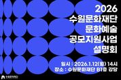 [경기탑뉴스=박봉석 기자] 수원문화재단은 오는 9일부터 지역 문화예술인 및 단체를 위한 2026년도 수원 문화예술지원사업 공모를 시작한다. 이번 공모지원사업은 지역 문화예술인의 자율적이고 다양한 문화예술 창작‧활동을 지원하기 위해 마련됐다. ▲문화예술 창작지원사업 ▲유망예술가 지원사업 ▲경기예술활동 지원사업 ▲형형색색 문화예술지원사업 등 총 4개 사업을 진행한다. 이번 공모도 전년도와 동일하게 ▲지원분야 간소화 및 일원화 ▲청년예술인 우대(유망예술가 지원사업) ▲원로예술인 및 장애예술인 대상 우선할당제(형형색색 문화예술지원사업)가 적용된다. 먼저 ‘문화예술 창작지원사업’은 지역 전문예술인 및 단체의 창작활동 활성화를 위한 사업이다. 지원 분야는 2025년부터 기존 4개 분야에서 공연/시각/문학 3개 분야로 변경됐으며, 미발표 신작에 한하여 신청이 가능하다. 사업비는 총 8,000만원으로 건당 지원금은 분야별로 상이하다. ‘유망예술가 지원사업’은 활동경력 5년 이내의 지역 신진예술가 및 단체의 창작활동 활성화를 위한 사업이다. 공연/시각 총 2개 분야의 창작 및 실연을 지원한다. 올해도 청년예술인(1
