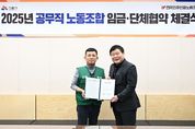 [경기탑뉴스=박봉석 기자] 시흥시는 지난 11월 26일 시청 다슬방에서 교섭대표 노동조합인 전국민주연합노동조합 시흥지부와 2025년도 공무직 임금ㆍ단체협약을 체결했다. 올해 교섭은 지난 9월 10일 상견례를 시작으로 약 2개월간 총 7차례의 실무교섭을 통해 진행됐으며, 상호 입장을 조율하기 위한 세부 논의를 거쳐 임금 협약과 단체협약 내용이 확정됐다. 임금 및 단체협약에는 ▲2024년 임금 총액 대비 3% 인상 ▲민원 업무 수당 및 위험 근무수당 신설 ▲임금 테이블 통합(사무보조 직군과 영양사ㆍ의료급여 등 전문ㆍ단순 노무 직군을 ‘노무원’으로 통합) ▲경력 인정 기준 신설 ▲휴직 사유 신설 등 다양한 개선 사항이 포함됐다. 이번 합의는 공무직 근로자의 복리 증진과 근무 여건 향상을 위해 노사 양측이 지속적으로 의견을 조율하며 마련한 것으로, 안정적이고 효율적인 근무 환경을 만드는 데 중요한 기반이 될 것으로 기대된다. 김기범 전국민주연합노동조합 시흥지부장은 “같은 시흥시 직원으로서 상생의 자세로 한 방향을 바라볼 수 있도록 협력해 준 시흥시에 감사드린다”라며, “이번 협약을 통해 조합원들이 더 안정