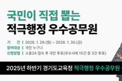 [경기탑뉴스=박봉석 기자] 경기도교육청이 공공의 이익을 높인 적극행정 우수공무원 선정을 위해 2025년도 하반기 대국민 심사를 실시한다. 도교육청은 창의적이고 능동적인 행정을 펼친 각 기관의 추천 사례를 접수해 1차 예선심사에서 우수사례 15건을 선정했다. 이를 대상으로 1월 26일부터 30일까지 ‘소통24’누리집에서 국민이 참여하는 온라인 투표 방식의 대국민 심사를 진행한다. 참여자는 1인당 3건의 우수사례에 투표할 수 있다. 본선 진출자는 예선심사 점수 60%와 국민투표 결과 40%를 합산해 최종 결정된다. 선발된 공무원에게는 교육감 표창과 포상금, 특별승급의 인사상 가점부여 등 다양한 특전을 제공할 계획이다. 이번 선발은 단순한 성과 평가를 넘어 적극행정의 모범사례를 널리 알리고, 공직사회 전반에 적극행정 문화를 확산시키는 의미가 있다. 특히 국민이 직접 우수공무원을 선정함으로써 정책 수요자의 관점이 반영된다는 점에서 공정하고 투명한 심사 절차가 마련될 것으로 기대된다. 도교육청은 앞으로도 국민이 체감하는 변화를 만들어낸 공무원의 노력을 널리 알리고, 적극행정을 일상적