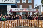 [경기탑뉴스=박봉석 기자] 오산시 세마동 행정복지센터는 세마동 단체연합이 11월 19일과 20일 이틀간 세마동 행정복지센터 1층 광장에서 지역 취약계층을 위한 ‘2025년 세마동 사랑의 김장담그기’ 행사를 따뜻한 분위기 속에서 진행했다고 밝혔다. 이번 김장 나눔 행사는 19일 김장 속재료 준비를 시작으로, 20일 속 채우기와 포장 등 본 작업이 이어졌으며, 세마동 단체연합은 ‘손끝의 온정을 담아 전합니다’라는 슬로건 아래 정성을 모아 행사를 진행했다. 올해 마련된 김장은 총 480포기 규모로, 세마동 관내 독거노인, 저소득층, 한부모 가정 등 어려운 이웃들에게 20일 당일 전달됐다. 신정순 세마동 새마을부녀회장은 “김장 나눔은 세마동 주민들이 마음을 모아 서로를 돌보는 뜻깊은 시간”이라며 “작은 정성이지만 필요한 이웃들에게 따뜻함이 전해지길 바란다”고 말했다. 유미정 세마동장은 “김장담그기 행사는 세마동 주민들의 마음이 모여 만들어진 정성의 상징”이라며 “정성껏 담근 김치가 겨울을 앞둔 이웃들에게 큰 힘이 되길 바란다”고 전했다.