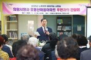 [경기탑뉴스=박봉석 기자] 의왕시는 11월 12일 오봉산마을 아파트 작은도서관에서 ‘찾아가는 시장실’을 열고 아파트 주민들과 함께 시정 현안과 생활 불편사항에 대해 소통하는 시간을 가졌다. 이번 행사는 주민 50여 명이 참석한 가운데 진행됐으며, 이 자리에서 김성제 시장은 2025년 시정 현안을 설명하고 아파트 주민들의 건의 사항에 대해 적극적으로 답변하는 등 참석자들의 큰 호응을 얻었다. 아울러, 이날 주민들은 ▲안양천 정비 현황 ▲의왕~봉담간 고속도로 소음방지벽 공사 일정 ▲아파트 인근 산책로·공원·도로 정비 상황 ▲배정 초등학교 통학 문제 등 실생활과 밀접한 다양한 사안을 문의하고 건의했다. 김성제 시장은 “생활 현장에서 시민들의 목소리를 직접 듣고, 해결 방안을 함께 고민하는 것이 진정한 소통행정”이라며, “건의된 사항은 면밀히 검토해 시민들의 불편 사항을 신속히 해결하겠다”고 말했다. ‘찾아가는 시장실’은 김성제 시장이 직접 시민·단체 등을 찾아 민의를 청취하는 소통행정이다. 김 시장은 오는 ▲11월 24, 인덕원자이에스케이뷰아파트 ▲11월 27일, 의왕시 체육인 ▲12월 4일, 대방디에