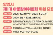 [경기탑뉴스=박봉석 기자] 안양시는 이달 21일까지 아동들이 시의 주요 정책 및 사업 추진 과정에 직접 참여하여 의견을 제시할 수 있는 ‘안양시 아동참여위원회’의 제1기 위원을 모집한다고 6일 밝혔다. 안양시 아동참여위원회는 지난해 6월 유니세프 아동친화도시 인증 이후, 보호의 대상이 아닌 권리의 주체이자 행정의 당사자로서 시정에 참여할 수 있도록 마련된 참여기구이다. 모집 대상은 2026년 기준 안양시에 주민등록을 두거나 관내 학교에 재학 중인 만 7세(초등 1학년)부터 만 16세(고등 2학년)까지의 아동이며, 모집 인원은 25명 내외이다. 시는 권역·성별·연령 등을 고려해 균형있게 위원을 구성하고, 장애·다문화·취약계층 등 다양한 배경의 아동이 고르게 참여할 수 있도록 할 방침이다. 아동참여위원은 2026년 3월부터 2년 동안 ▲아동 관련 정책 및 예산에 대한 토론 ▲아동권리 옹호·홍보 활동 ▲아동친화 공간 체험활동 ▲아동학대 예방 캠페인 등 시정의 파트너로서 다양한 활동을 수행하게 된다. 아동참여위원에게는 자원봉사 실적 인정, 표창 수여 등의 혜택이 주어진다. 참여를 희망하는 아동