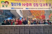 [경기탑뉴스=박봉석 기자] 광명시 철산3동 새마을부녀회는 지난 19일부터 20일까지 이틀간 철산3동 행정복지센터 앞마당에서 ‘사랑의 김장 나누기’ 행사를 열었다. 이번 행사에는 철산3동 새마을부녀회와 유관 단체 회원 50여 명이 참여해 정성껏 담근 김장김치를 취약계층 62가구에 10kg씩, 관내 경로당 9곳에는 20kg씩 전달했다. 또한 한국마사회 광명지사와 광명동부 새마을금고 등 지역의 여러 기관·단체가 따뜻한 나눔에 함께했다. 임순자 회장은 “물가 상승으로 김장 준비가 어려운 이웃들에게 정성껏 담근 김치가 따뜻한 마음으로 전해지길 바란다”며 “앞으로도 회원들과 함께 나눔과 봉사를 꾸준히 이어가겠다”고 전했다. 손영만 동장은 “쌀쌀한 날씨에도 이웃 사랑을 실천한 새마을회원들과 유관 단체원들에게 감사하다”며 “이번 김장 나눔으로 어려운 이웃들이 따뜻한 겨울을 보내길 바란다”고 말했다. 한편, 철산3동 새마을부녀회는 이웃돕기 바자회, 불고기·반찬 나눔, 거리 청소 등 다양한 봉사활동으로 따뜻하고 살기 좋은 지역사회 조성에 힘쓰고 있다.