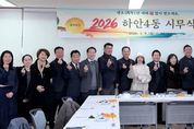 [경기탑뉴스=박봉석 기자] 광명시 하안4동 행정복지센터는 지난 5일 센터 2층 회의실에서 2026년 병오년(丙午年) 새해를 맞아 유관단체장과 마을연대활동가 등 30여 명이 참석한 가운데 시무식을 열었다. 이날 시무식은 지난해 적극적인 시정과 동정 활동으로 지역 발전에 헌신한 유관단체장과 활동가들에게 감사의 마음을 전하기 위해 마련했다. 참석자들은 새해 주요 업무 추진에 대한 의지를 다지며 하안4동의 도약과 화합을 기원하는 시간을 가졌다. 이재희 동장은 “유관단체의 적극적인 협조로 지난해 내실 있는 성장을 이뤘다”며 “올해는 소외된 이웃을 더욱 세심하게 살피고 주민 행복을 최우선으로 노력하겠다”고 말했다. 김성동 하안4동 단체장협의회장은 “2026년 새해에도 모든 주민이 행복한 하안4동을 만들기 위해 유관단체들이 한마음으로 협력하고 이웃사랑 실천에 앞장서겠다”고 말했다. 한편, 하안4동 행정복지센터는 시무식 종료 후 참석자들과 떡국을 함께 나누며 새해 인사를 전하고 소통과 화합의 의미를 더했다.