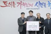 [경기탑뉴스=박봉석 기자] 군포시는 지난 11일 공단로에 위치한 포장용 플리스틱 성형용기 제조업체인 주식회사 진한으로 부터 후원금 1,000만원을 기탁 받았다고 밝혔다. 기탁식에는 하은호 군포시장, 배성한 이사 등 관계자가 참석하여 담소를 나눴다. 이날 기탁식에 참석한 배성한 이사는 “연말을 맞이하여 관내 어려운 이웃과 온정을 나눌 수 있어 기쁘다. 군포시 관내 기업으로 지역사회의 사회보장 발전을 위해 기여하는 건강한 기업이 되도록 노력하겠다”고 말했다. 하은호 군포시장은 “매년 지역사회의 어려운 이웃을 위해 나눔에 앞장서며 지역사회보장 발전에 기여하고자 노력하는 ㈜진한의 임직원 및 관계자에 감사드린다. 앞으로도 지역과 함께 성장하는 기업이 되길 진심으로 바란다”고 전했다. 이번 후원금은 사회복지공동모금회를 통해 관내 취약계층에 전달 할 예정이다.