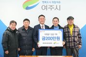 [경기탑뉴스=한진선 기자] 지난 7일 대신파크골프동호회 회장 윤희정, 전 회장 최병규, 박성배·이현권 회원 등은 여주시를 방문하여 관내 저소득층을 위한 이웃돕기 성금으로 200만원을 기탁했다 최병규 전 회장은 “이번 성금은 200명 내외의 동호회 회원들이 나눔에 대한 뜻을 함께해 회비로 십시일반 모아 마련하게 됐으며, 큰 금액은 아니지만 정성으로 모은 성금이니 만큼 도움을 필요로 하는 이웃에게 조금이나마 보탬이 됐으면 한다.”며 기부 소감을 밝히셨다. 또한, “회원들이 파크골프를 통해 건강관리 및 친목 도모에 그치지 않고 자발적으로 파크골프장 관리 및 주변 정비활동에도 참여하는 등 지역사회를 위한 다양한 활동을 모색중으로 좀 더 많은 분들이 파크골프에 참여하고 여주시에서도 파크골프에 대한 인프라 확충 및 지원 등 많은 관심을 가져주었으면 좋겠다.” 며 당부말씀도 잊지 않으셨다. 이충우 여주시장은 “어려운 시기임에도 불구하고 연말연시를 맞이하여 여주시 저소득층을 돕고자 나눔을 실천해 주신 대신파크골프동호회 회장 및 회원분들께 감사드리며, 여주시가 더욱 따뜻하고 세심한 복지 도시, 어르신을 잘 섬기는 충효 도시